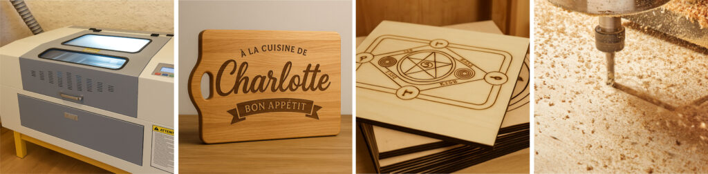 La gravure laser permet de personnaliser vos pièces bois de façon fine et durable.